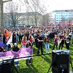 Am Marktplatz endete die Demonstration mit einer großen Abschlusskundgebung und weiteren Reden von Rohnahi Berivan, PLUS Rhein-Neckar, Ciwanen – Kurdische Jugend, dem Queeren Zentrum Mannheim, dem Mesopotamischen Kulturverein und Yeni Kadin – Neue Frau. Zum Abschluss gab es eine Trommel- und Tanzeinlage der Kurdischen Frauen. Der diesjährige feministische Kampftag war für uns ein voller Erfolg und unsere bisher bestbesuchte Veranstaltung. Die große Anzahl der Teilnehmer*innen hat unsere Erwartungen bei Weitem übertroffen!