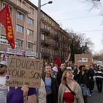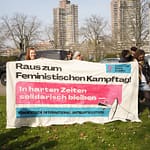 Vom Gewerkschaftshaus aus sind wir mit einem großen und lauten Demozug über die Fressgasse durch die Innenstadt bis zum Marktplatz gelaufen. Ein Banner-Drop am NTM setzte ein Zeichen der Solidarität mit dem Kampf der Frauen in Rojava Mit queerfeministischen, antifaschistischen und antikapitalistischen Parolen haben wir uns Gehör verschafft und deutlich gemacht, warum wir am 8. März auf die Straße gehen und dass wir uns diesen Tag nicht nehmen lassen, auch nicht von den politischen Wahlkämpfen, die an diesem Tag stattfanden.